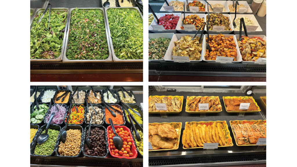 Gourmet Lunch Options: Enjoy our gourmet made to order sandwiches served on ciabatta bread or explore our salad bar, featuring a wide selection of made-from-scratch salads. With our build-your-own salad option, you can create the perfect meal with fresh-cut ingredients, including vegetarian choices.